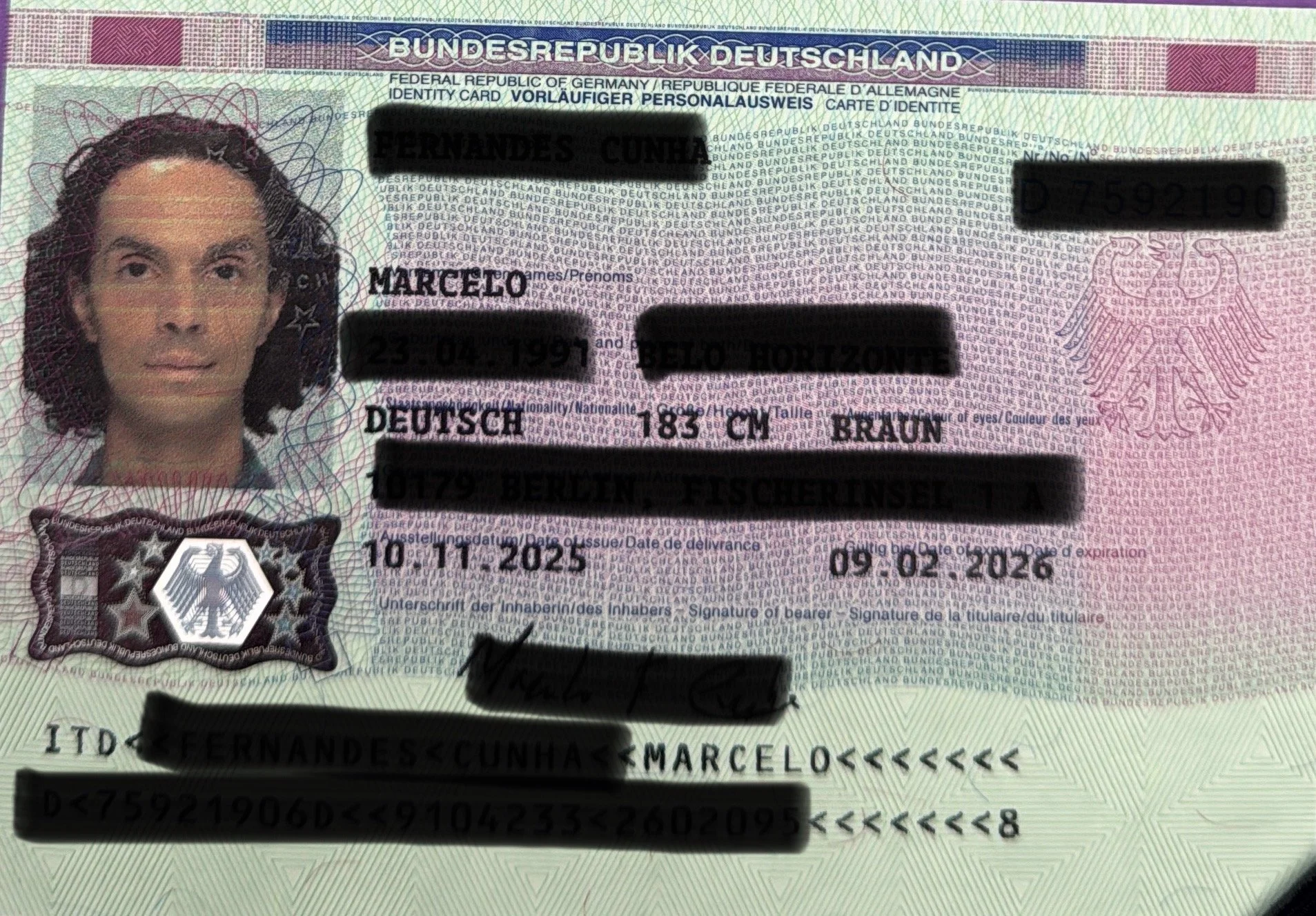After over a year of excruciating bureaucracy, I finally became naturalised as a German citizen. This is the so-called “vorläufiger Personalausweis” (temporary identification card), which was issued while I wait for my artistic name to be approved by the competent authority.